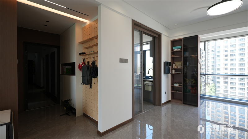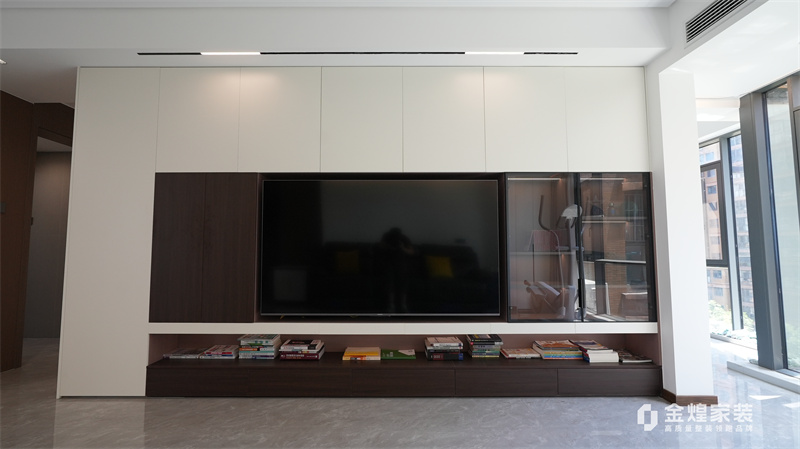 整體色調以黑白灰為主,簡潔明快,沒有過多的裝飾,體現了現代意式風格的特點。客廳的布局開闊,家具的選擇也以簡約為主,如黑色皮質沙發、簡潔的電視柜等,都符合現代人的審美。