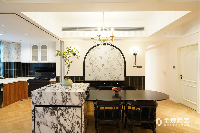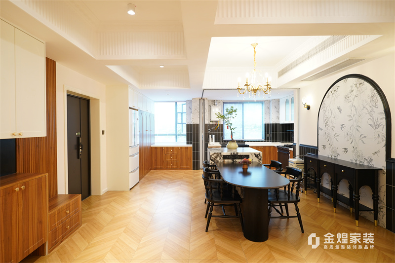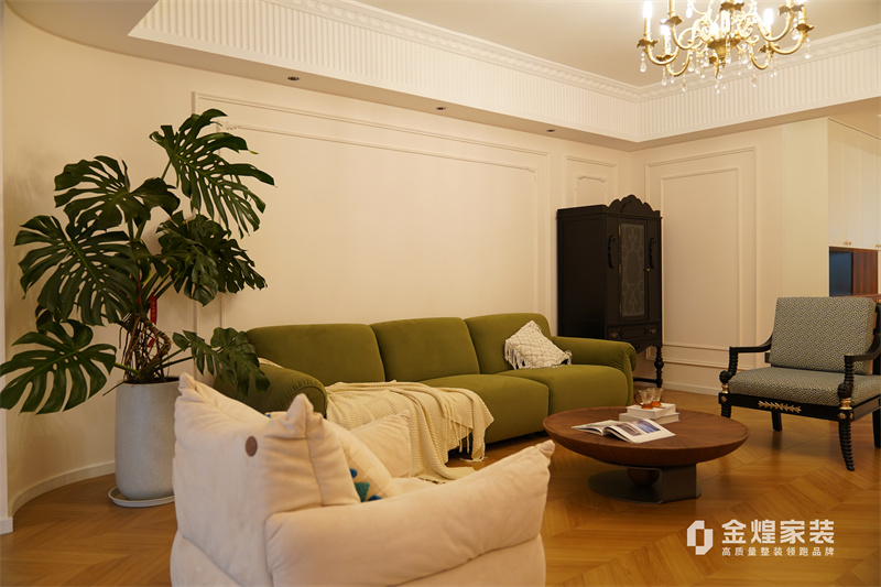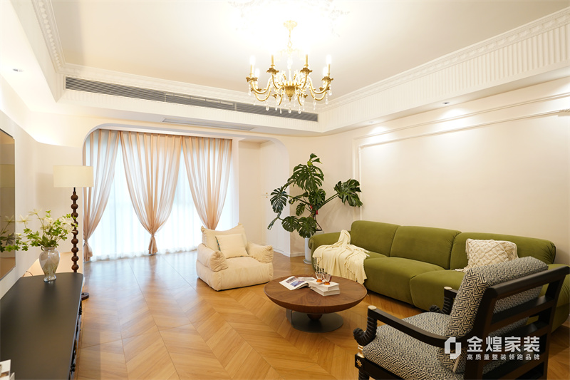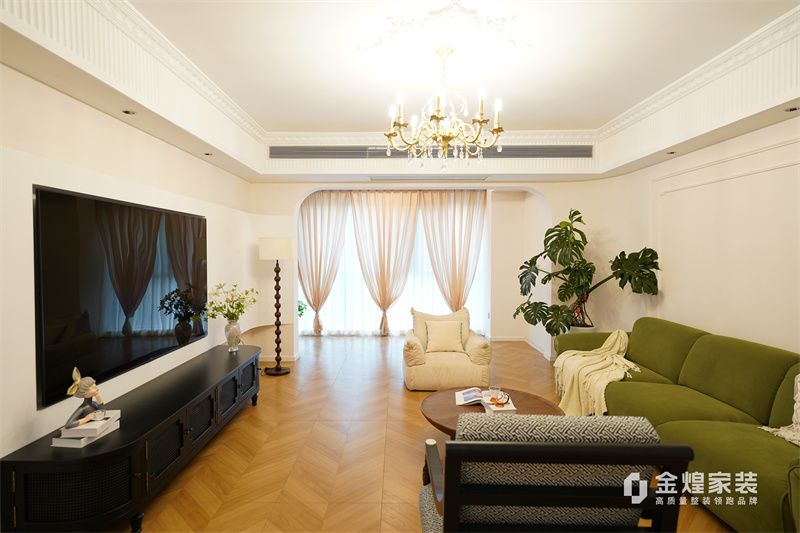 從客廳的裝飾細節可以看出,如帶有精致雕花的天花板、華麗的吊燈、優雅的家具線條以及整體柔和的色調,都透露出法式風格的浪漫與典雅。