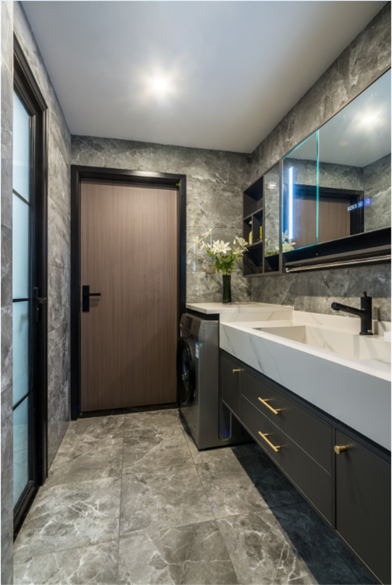 意式極簡的設計中,浴室也同樣追求極簡,但更加注重舒適和體驗感,設計師加入的智能馬桶、可調節淋浴花灑等智能家居設計,讓生活更貼心暖心。
