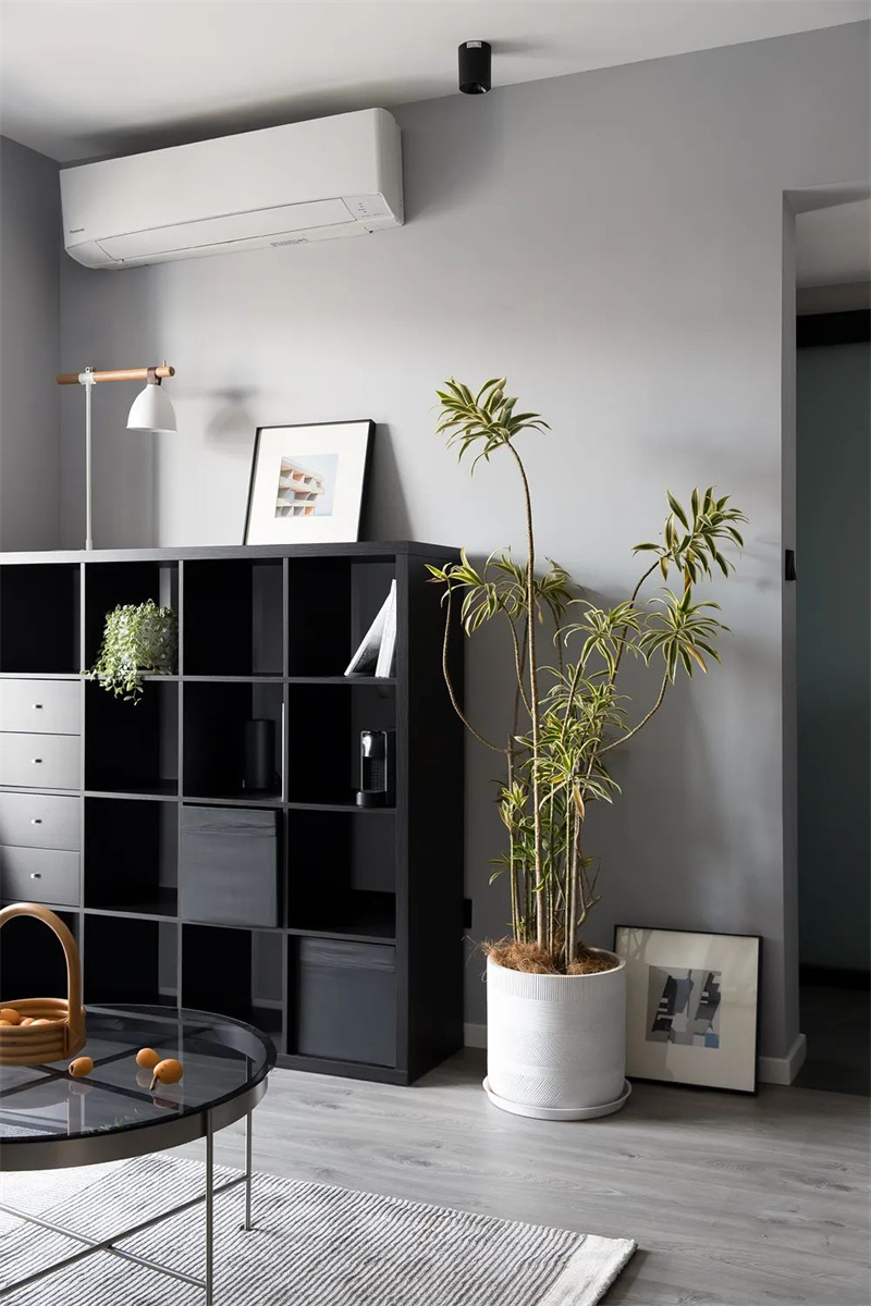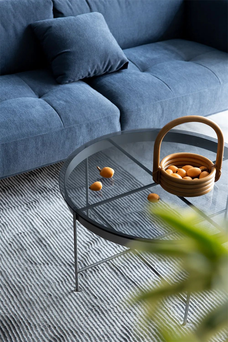 客廳采用無主燈設計風格,在頂面四周設置筒燈,布置出一個簡潔大方的空間;再搭配上現代舒適的家具,讓空間充滿時尚優雅的氣質。柔軟的沙發搭配精致的咖啡桌,墻上掛著一些抽象裝飾畫,為空間增添了一些藝術氣息。